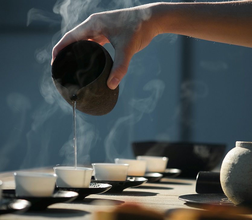 Guests take the filled cup with both hands and sip the tea while savoring it. Three sips should see them through. Lastly, savoring the lingering aroma and fragrance in the cups is important. Before leaving, the guests bend their two forefingers and tap the cup or the table as a show of gratitude.